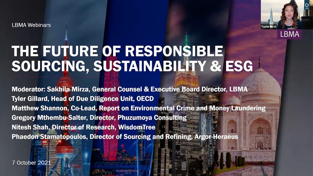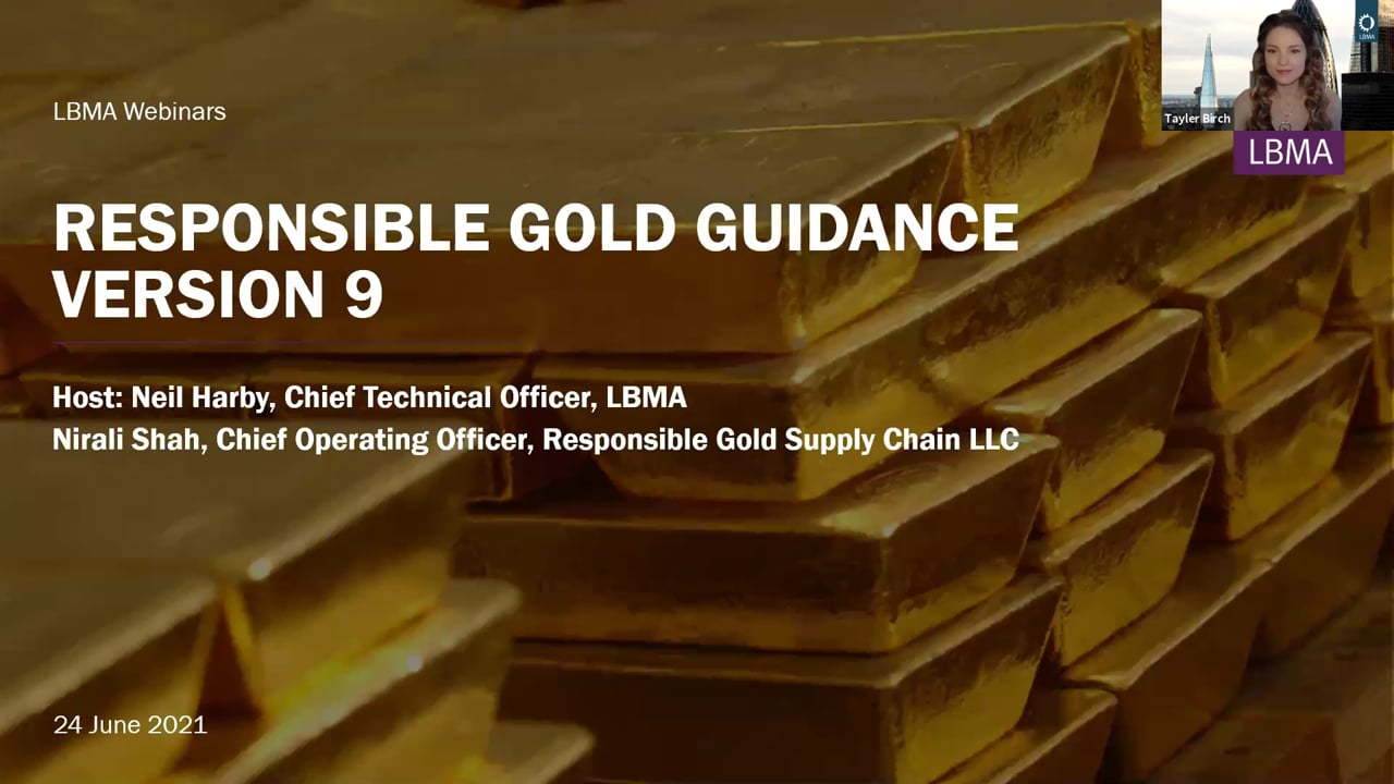 In this week’s webinar, Sakhila Mirza (LBMA Executive Board Director and General Counsel) provided a rundown of LBMA’s Responsible Sourcing strategy, flagging the imminent release of the Responsible Gold Guidance Version 9 in the coming days, Country of Origin data, engagement with International Bullion Centres, and future development of the Responsible Sourcing Programme.
